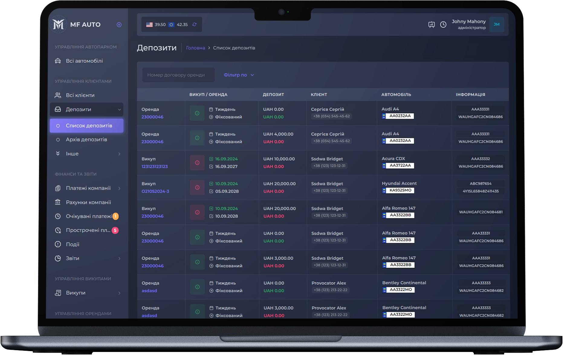 MF AUTO CRM allows you to manage fixed and percentage rentals. To do this, the system provides a number of functions that allow you to flexibly manage the service.